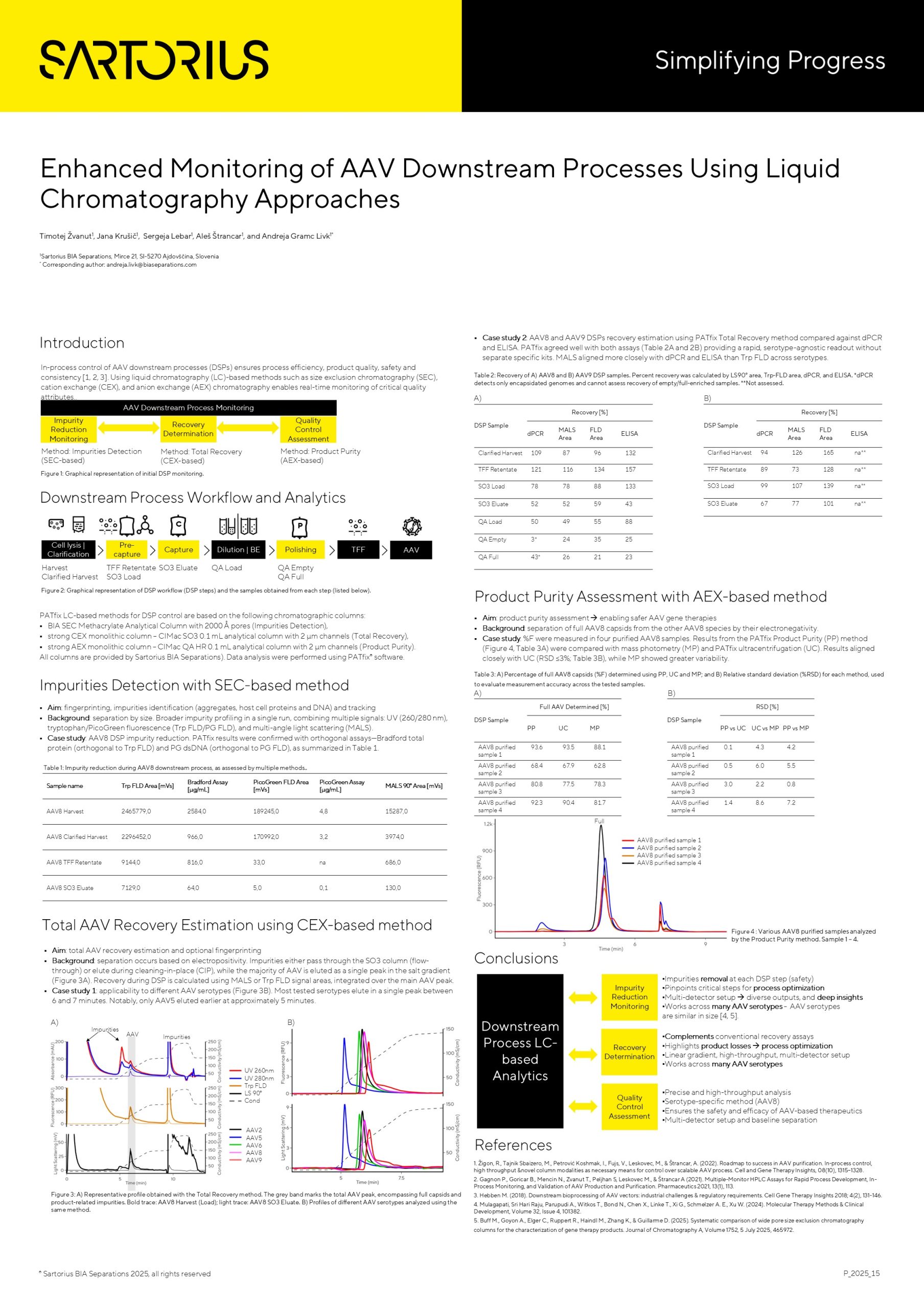 In-process control of AAV downstream processes (DSPs) ensures process efficiency, product quality, safety and consistency [1, 2, 3]. Using liquid chromatography (LC)-based methods such as size exclusion chromatography (SEC), cation exchange (CEX), and anion exchange (AEX) chromatography enables real-time monitoring of critical quality attributes.