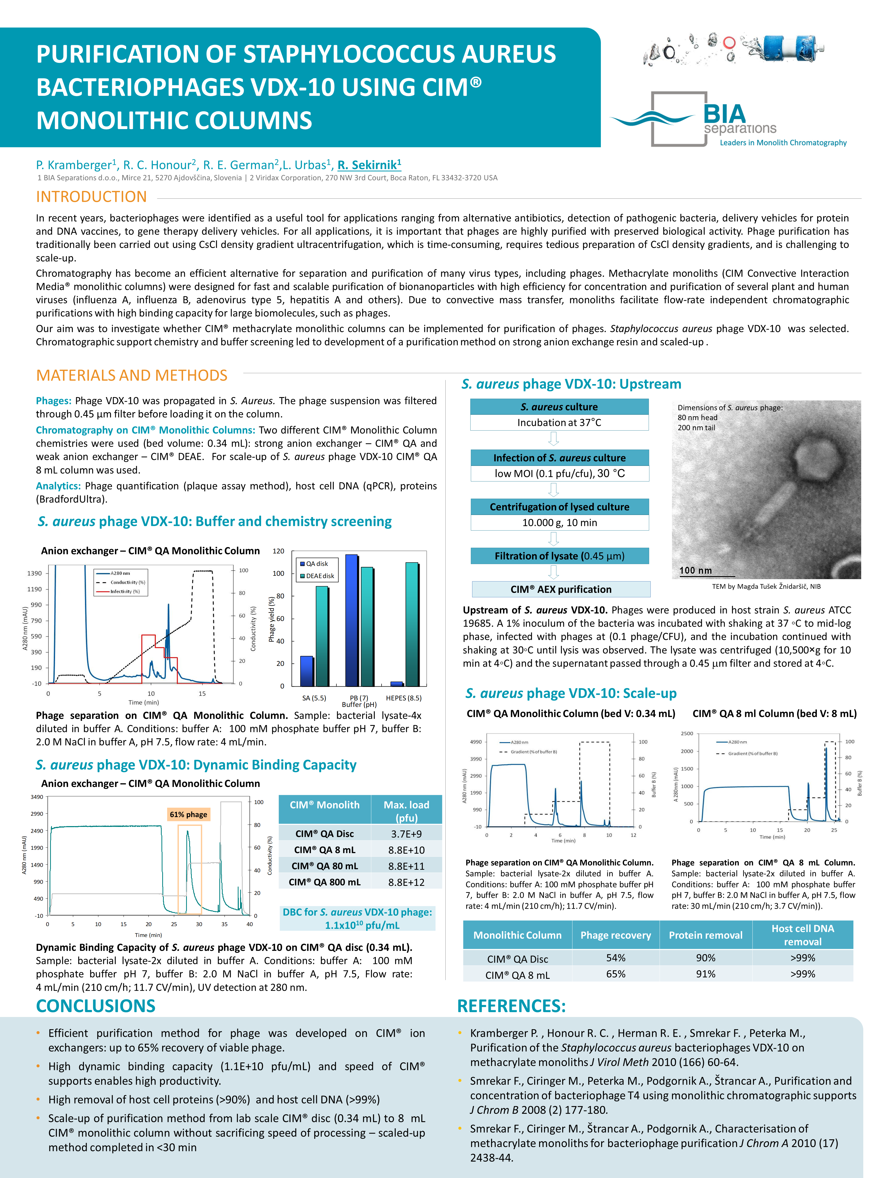 Purification of Staphylococcus Aureus Bacteriophages VDX-10 Using CIM Monolithic Columns