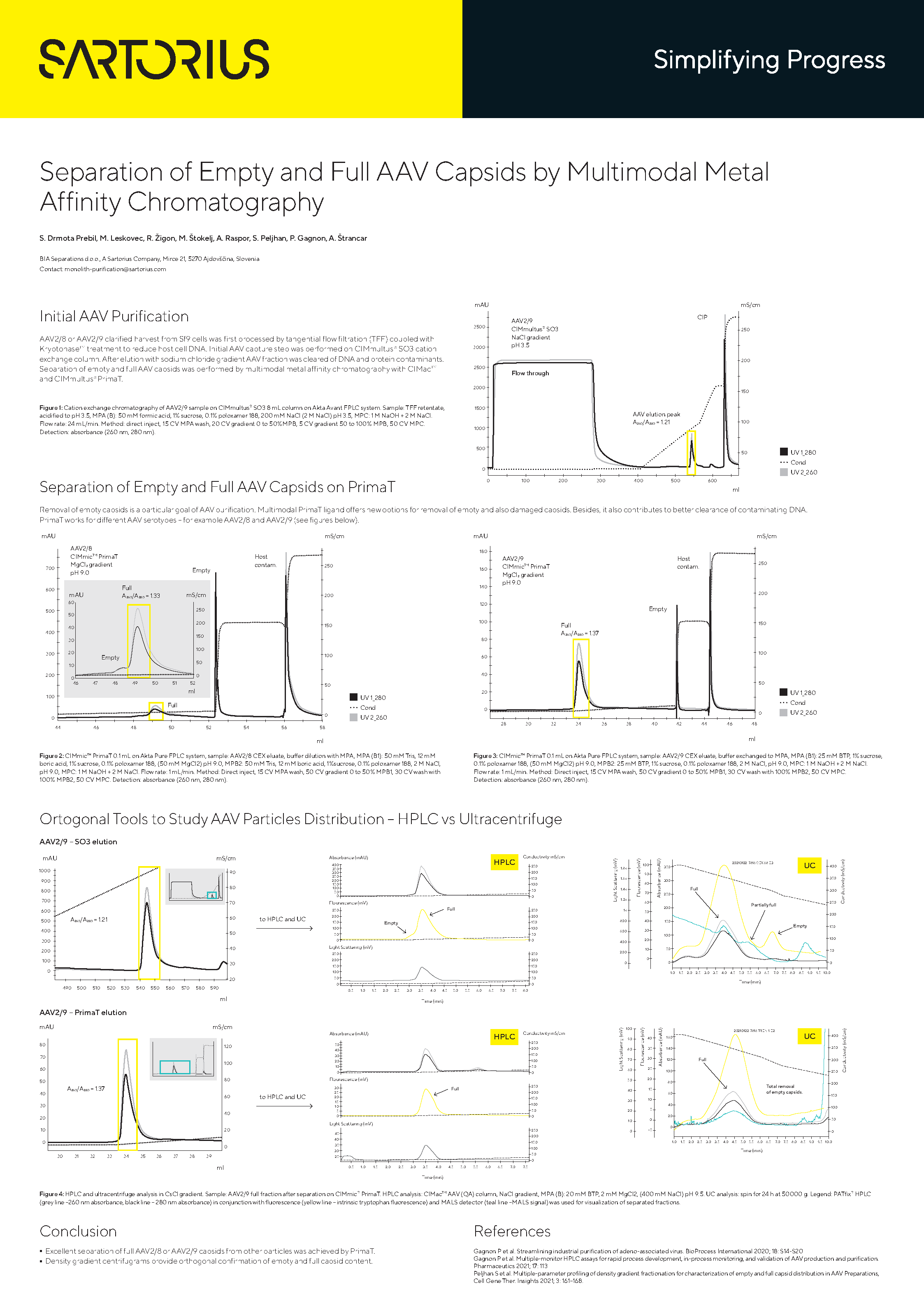 Separation of empty and full AAV capsids was performed by multimodal metal affinity chromatography with CIMac and CIMmultus PrimaT.